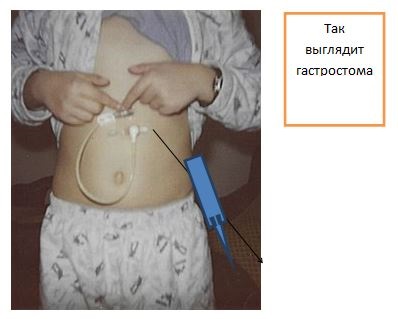 Гастростома — это специальная трубка, которая вшивается в желудок и выводится через кожу наружу. Через нее можно вводить пациенту жидкость и пищу.